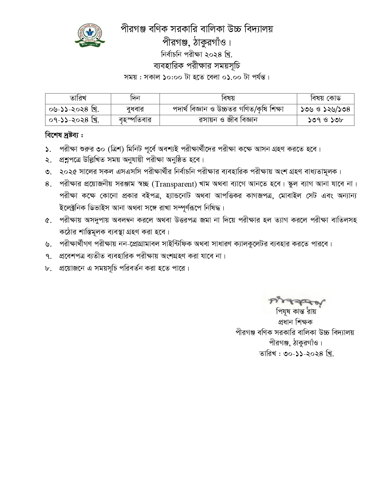 নির্বাচনি পরীক্ষা ২০২৪ খ্রি. এর ব্যবহারিক পরীক্ষার রুটিন।