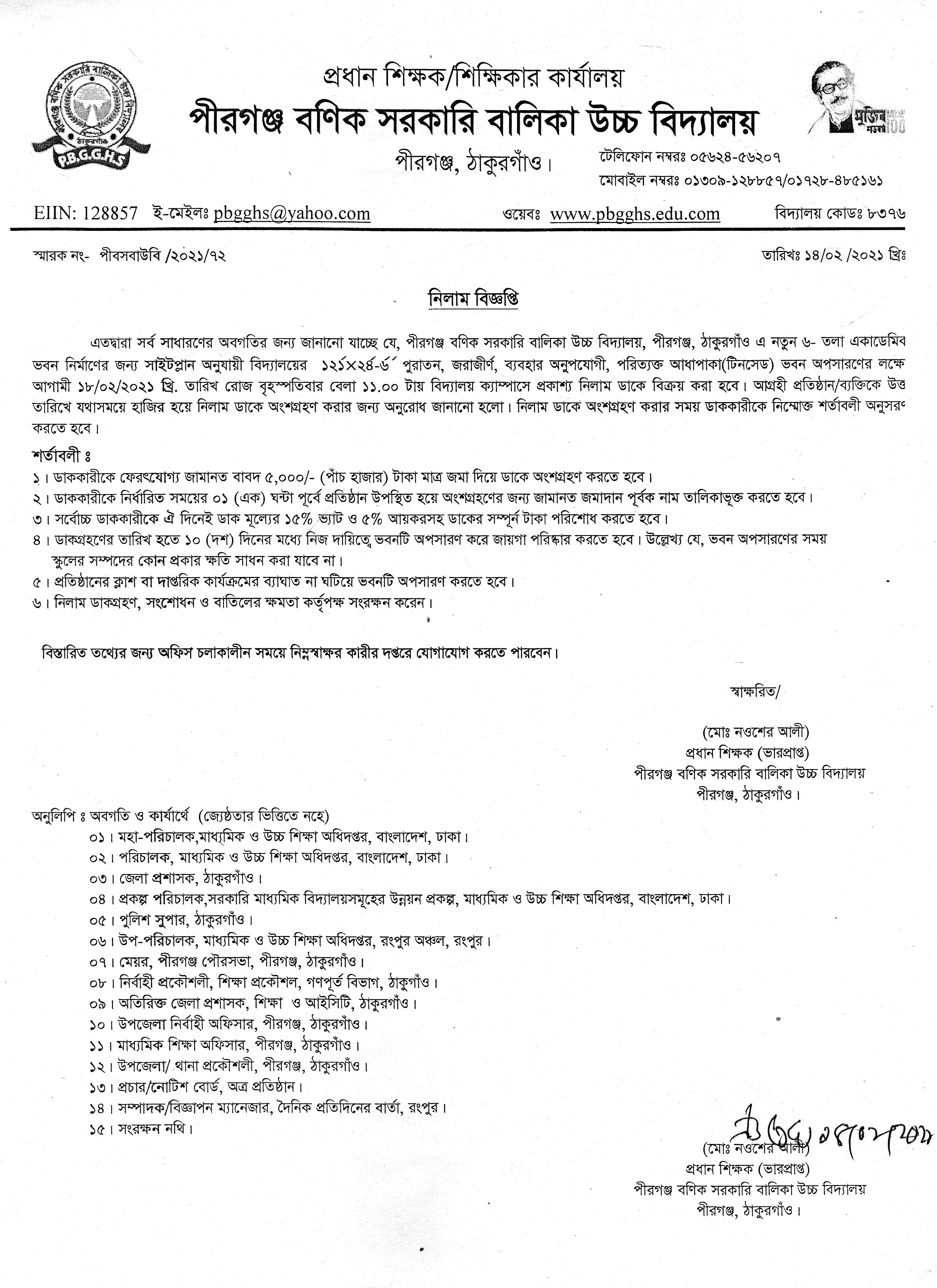 পুরাতন ভবন নিলাম বিজ্ঞপ্তি